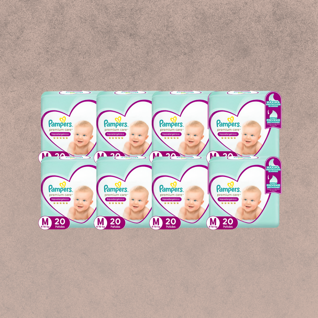 8 Paquetes de Pañales Pampers premium care Talla M 160 unidades